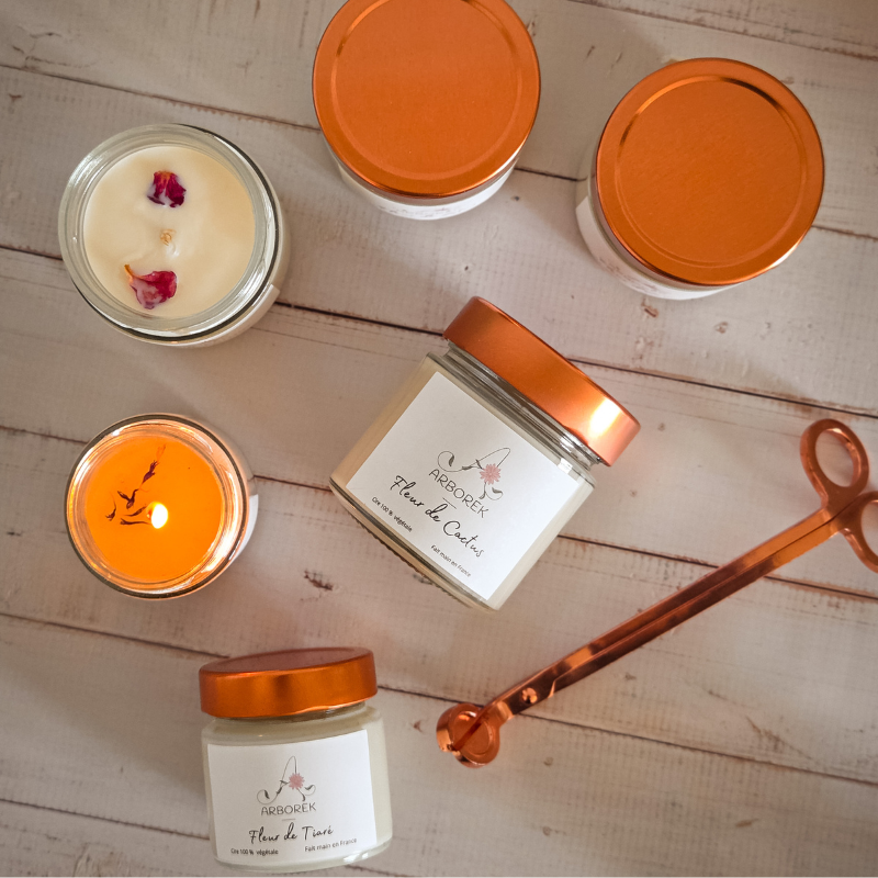 Les bougies ARBOREK sont fabriquées à la main en Île-de-France avec des ingrédients naturels soigneusement sélectionnés : cire 100 % végétale de soja, mèches en coton non traitées et parfums de Grasse élaborés par des maîtres parfumeurs. La cire utilisée est biodégradable, sans OGM ni pesticides. J'ai fait le choix d'utiliser des contenants à la fois recyclables et réutilisables, prolongeant ainsi leur durée de vie et offrant une alternative écoresponsable.